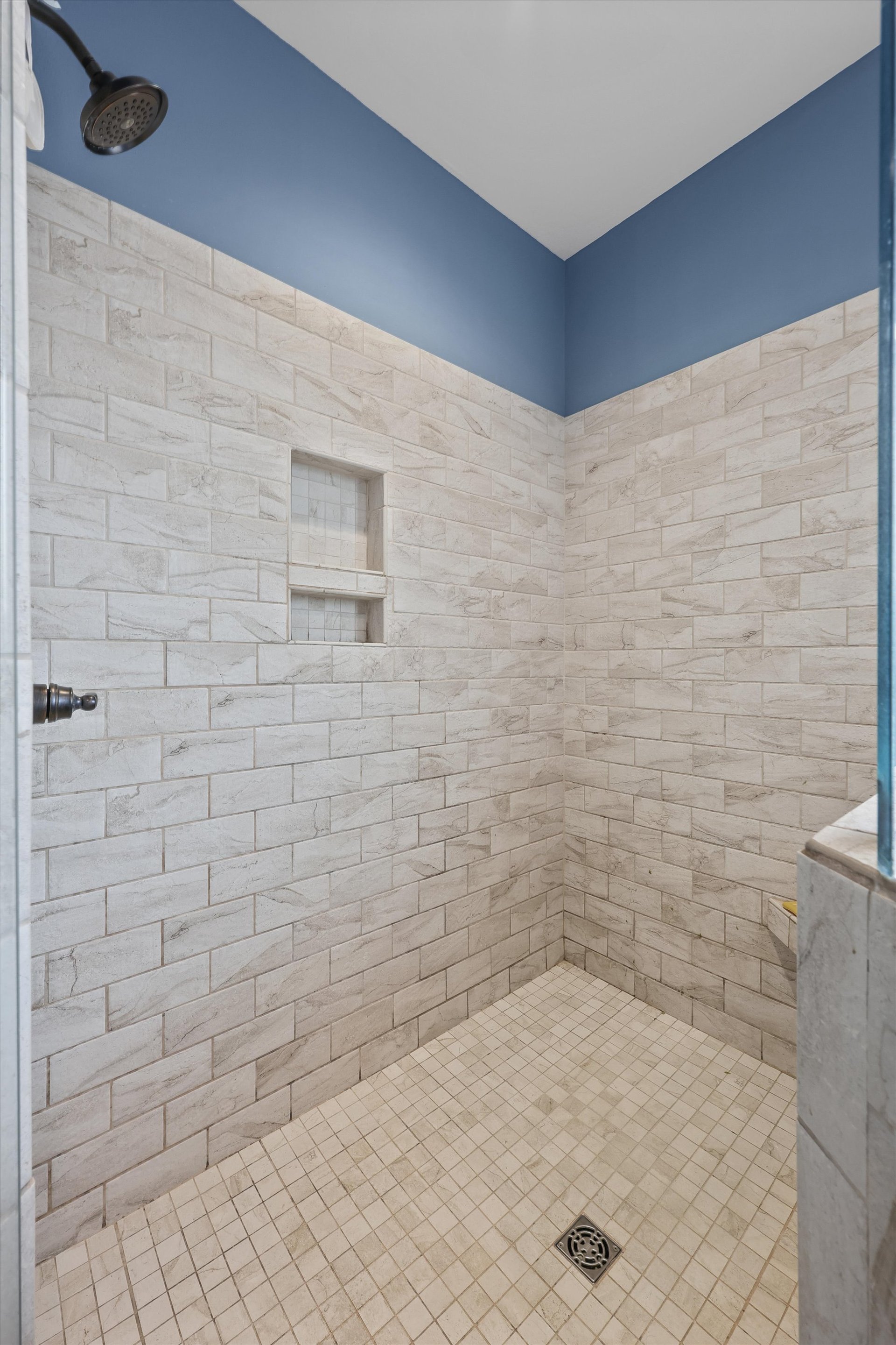 Walk-in tiled shower