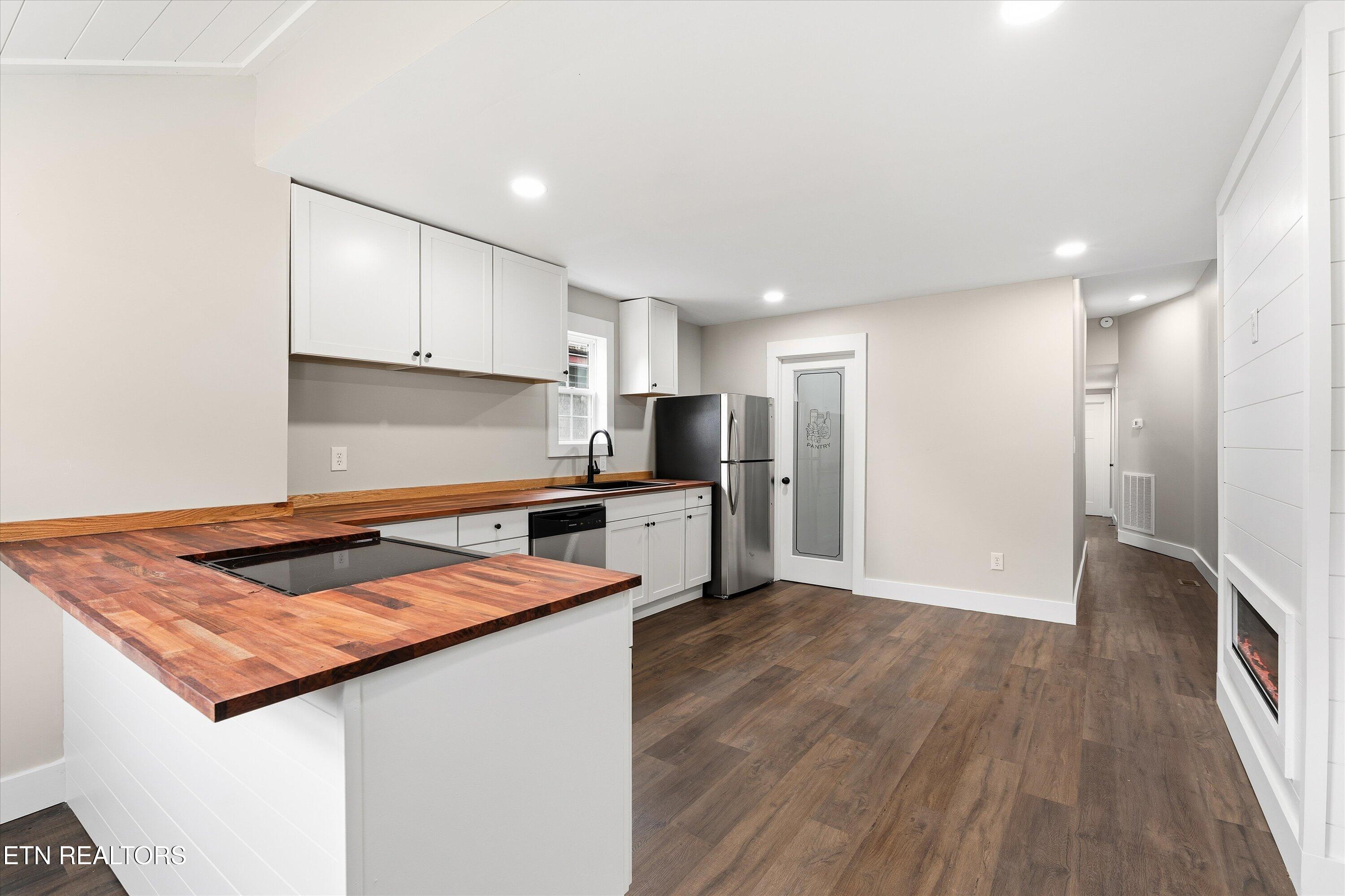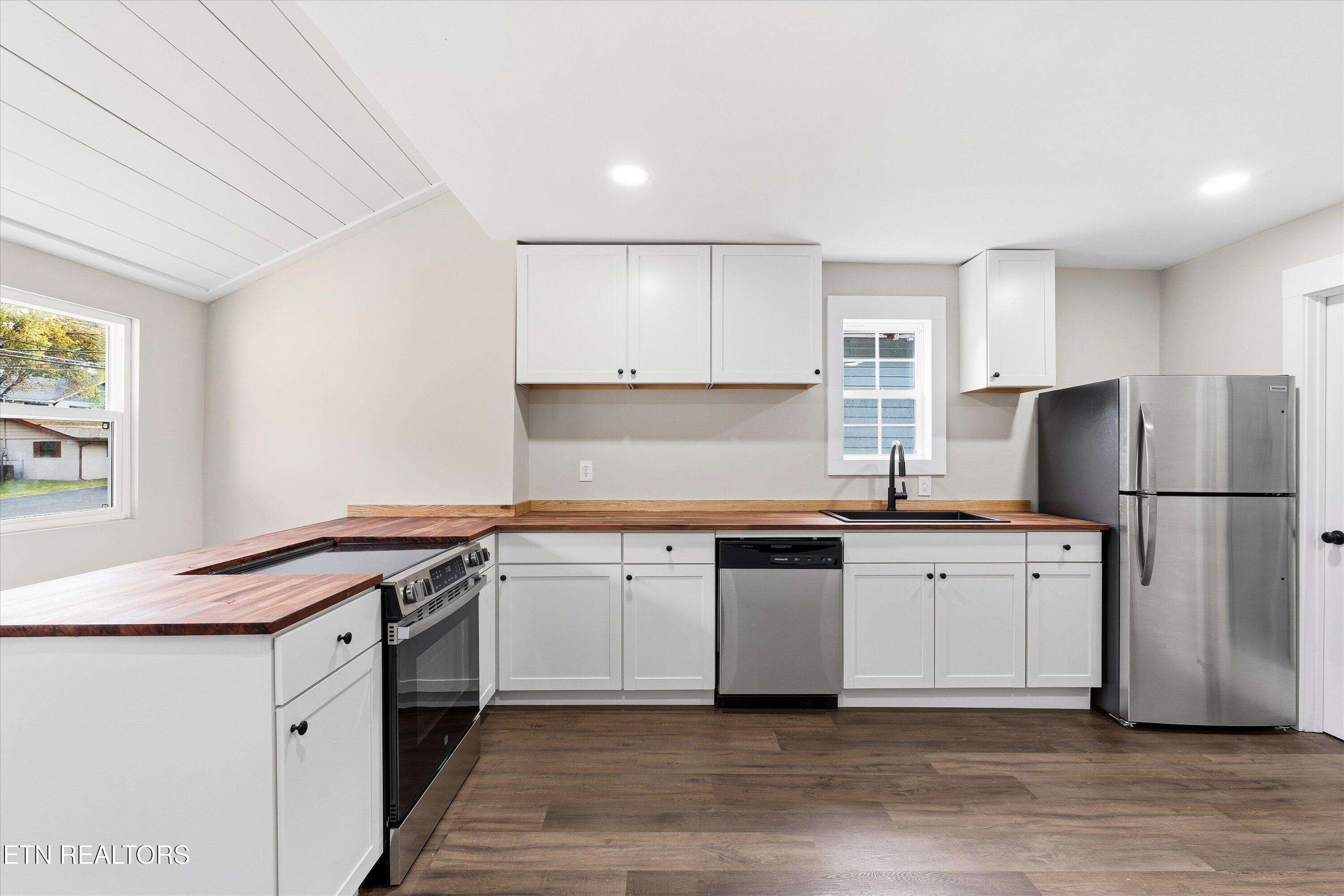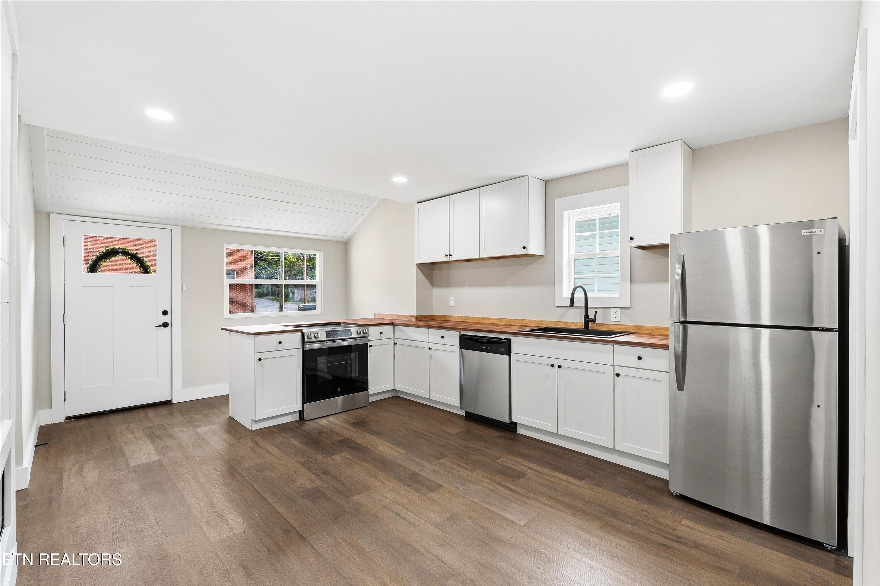 Step inside this fully renovated 2-bedroom cottage where historic character meets contemporary comfort. The open kitchen features beautiful butcher block countertops, crisp white cabinetry, and plenty of space for a large island or a cozy sitting area to enjoy your morning coffee by the fire. Every detail has been thoughtfully updated, from the sleek flooring and modern lighting to the timeless neutral palette, while keeping the charm of this beloved neighborhood intact. A spacious living area at the back of the home offers the perfect setting for relaxing evenings or entertaining friends. Outside, you will love the brand-new gravel driveway for designated parking and a new deck overlooking the fenced, flat backyard...perfect for pets or outdoor gatherings! MAJOR UPDATES include a new roof, siding, gutters, lighting, flooring, and HVAC, giving you complete peace of mind. Whether you are a first-time buyer, looking to downsize, or seeking a smart investment opportunity, this home checks all the boxes. Just minutes from downtown Knoxville, it is the perfect blend of convenience, character, and community.